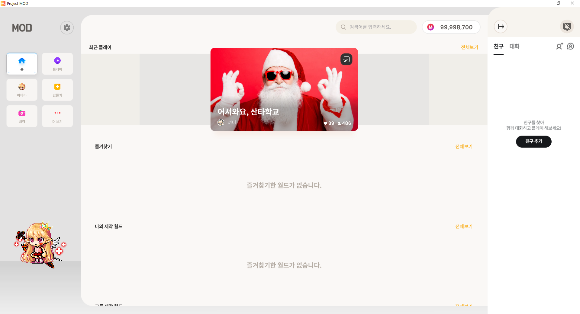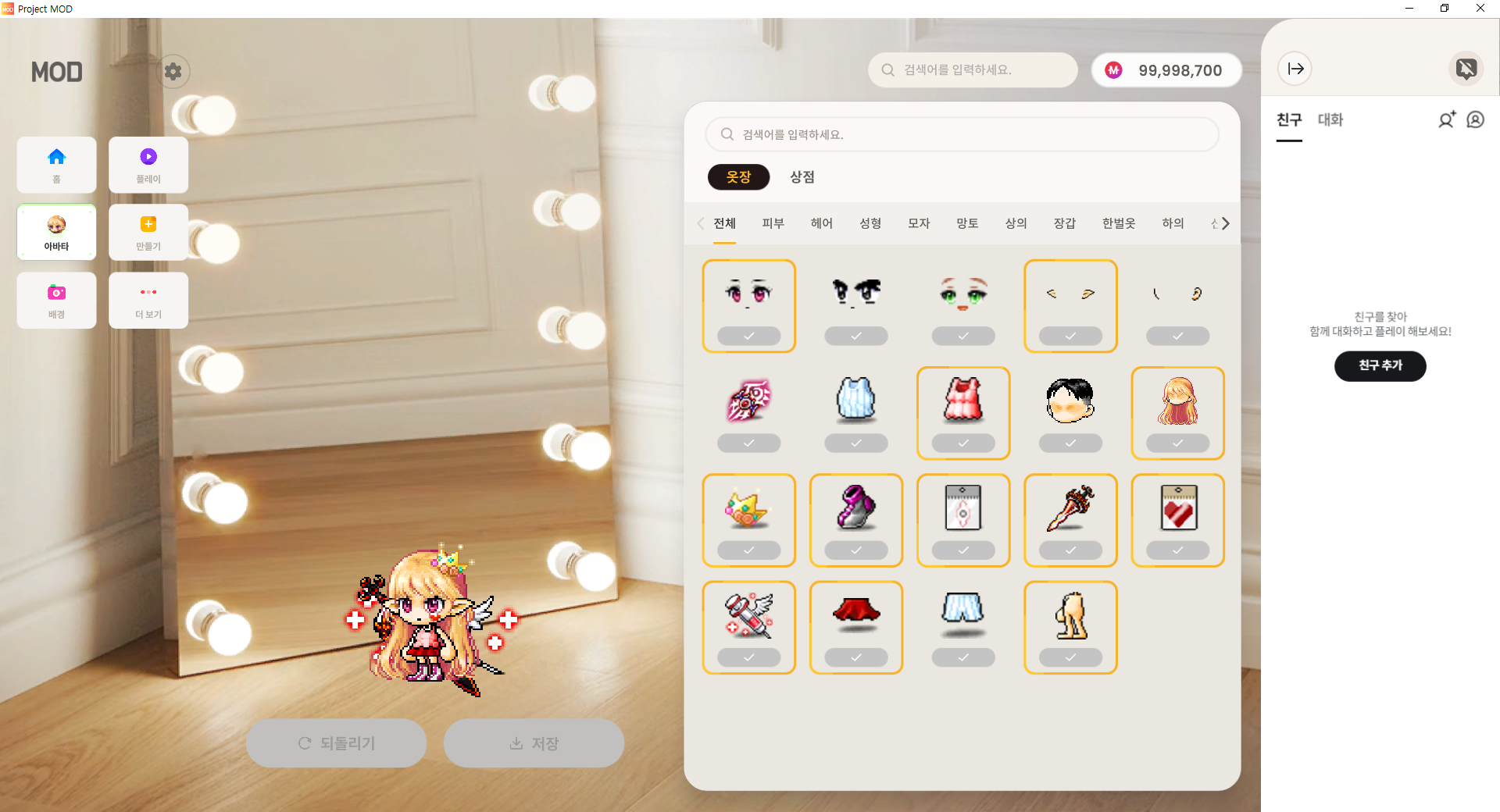 우선 MOD실행하자마자 내 캐릭터 커스텀하기 캐시 많아서 좋다 ㅎㅎ