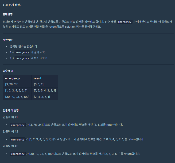 [프로그래머스] 코딩테스트 연습 -> 코딩테스트 입문 -> 진료순서 정하기