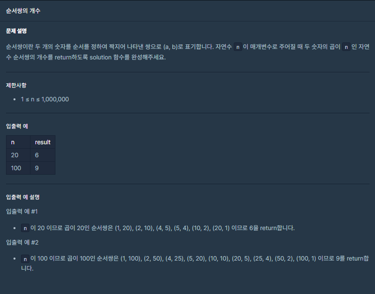 [프로그래머스] 코딩테스트 연습 -> 코딩테스트 입문 -> 순서쌍의 개수