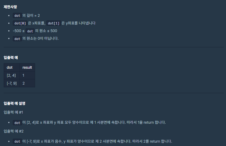 [프로그래머스] 코딩테스트 연습 -> 코딩테스트 입문 -> 점의 위치 구하기