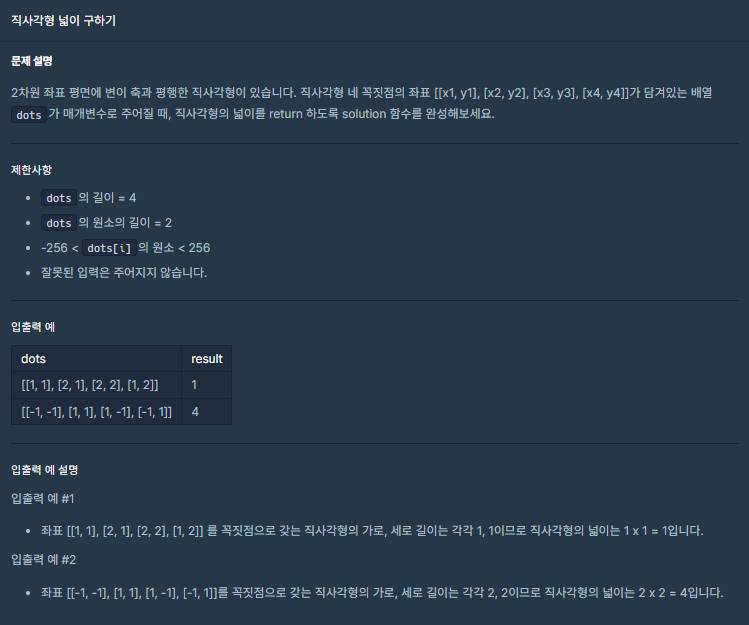 [프로그래머스] 코딩테스트 연습 -> 코딩테스트 입문 -> 직사각형 넓이 구하기