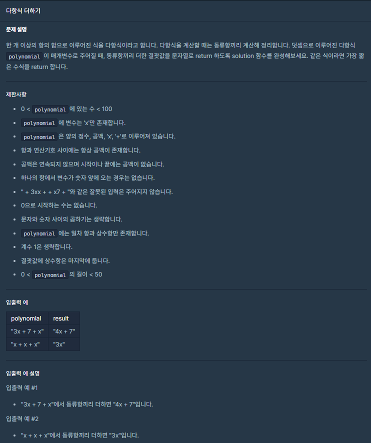 [프로그래머스] 코딩테스트 연습 -> 코딩테스트 입문 -> 다항식 더하기