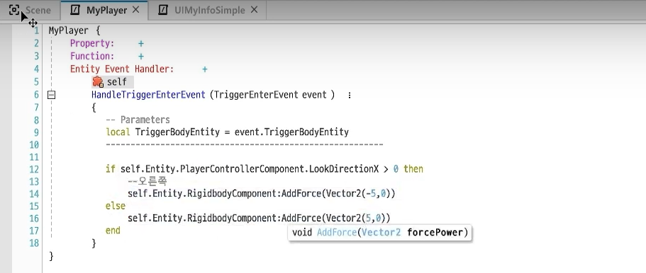 MyPlayer 컴포넌트 생성 - 충돌발생 시 밀려남