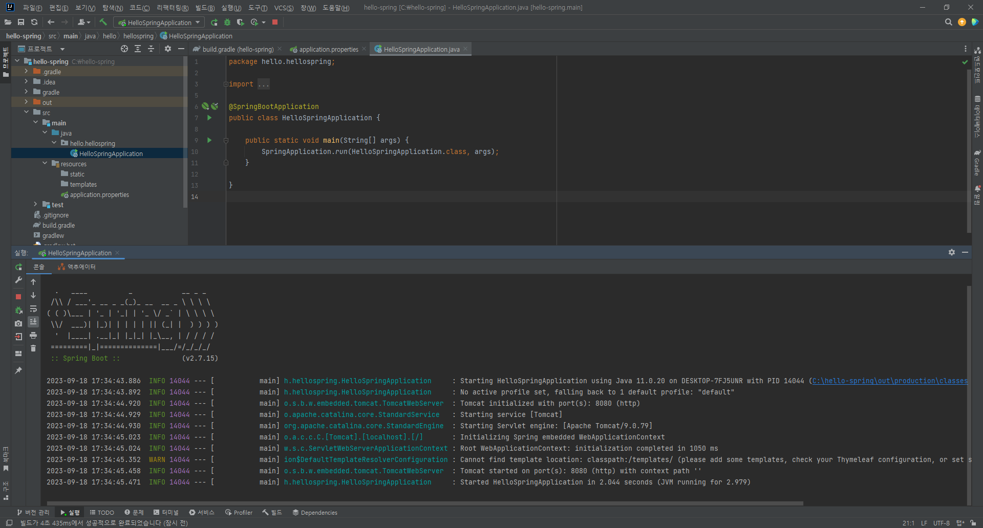 -> http://localhost:8080/hello 실행