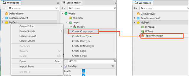 2. 워크스페이스에서 SpawnManager라는 이름으로 컴포넌트를 하나 생성