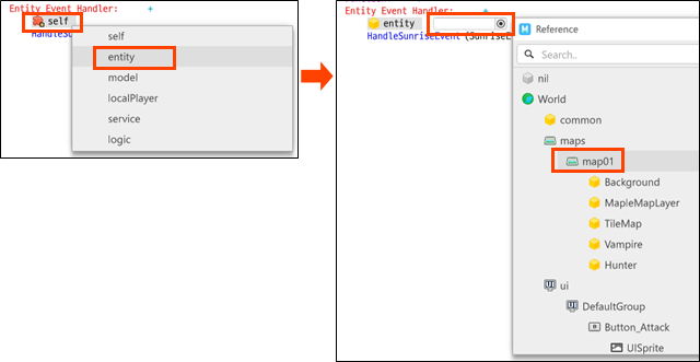 특히, Map Entity와 World Entity는 서로 간에 Event를 주고받는 경우가 많아 자주 사용됨