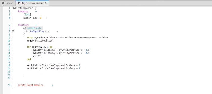 스크립트 컴포넌트에서는 프로퍼티 동기화 설정이 가능하도록 기능을 제공 -> 제작자가 본인이 만든 컴포넌트의 기능과 특성, 또는 제작자의 스타일에 따라 동기화 가능 여부를 설정케 함으로써 불필요한 동작을 줄이고 효율적인 구조로 설계해 나갈 수 있게 함