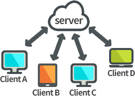 특정 클라이언트로부터 정보를 받은 서버는 클라이언트에게 다시 정보를 보내주거나, 혹은 전송한 내용을 게임 진행 상황에 업데이트시키고, 업데이트된 내용을 다시 모든 클라이언트에게 전송함으로써 게임을 이용하는 모든 유저가 동일한 상황이 될 수 있도록 맞춰줌