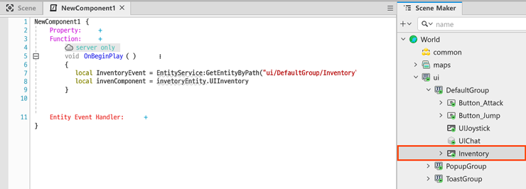 UI 엔티티는 클라이언트 공간에서만 존재하므로 서버에서는 접근 불가