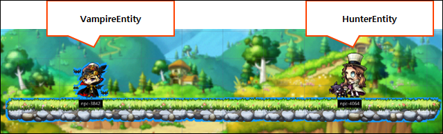 2. 컴포넌트가 동작할 Vampire NPC 엔티티와 Hunter NPC 엔티티를 다음과 같이 배치