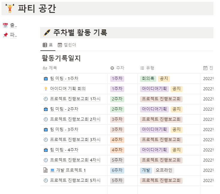 노션을 이용하여 25개의 팀들이 팀별로 스터디를 하고, 아이디어 빌딩을 할 수 있는 파티공간이 만들어졌다