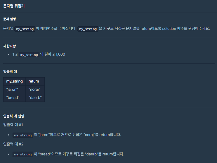 [프로그래머스] 코딩테스트 연습 -> 코딩테스트 입문 -> 문자열 뒤집기